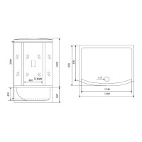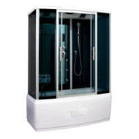 Комплектация: душевая кабина с полкой, ручной душ, вентилятор, подсветка, радио, сиденье, верхний душ;