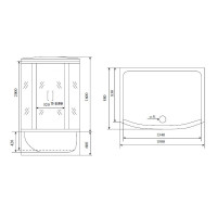 Комплектация: душевая кабина с полкой, ручной душ, вентилятор, подсветка, радио, верхний душ;