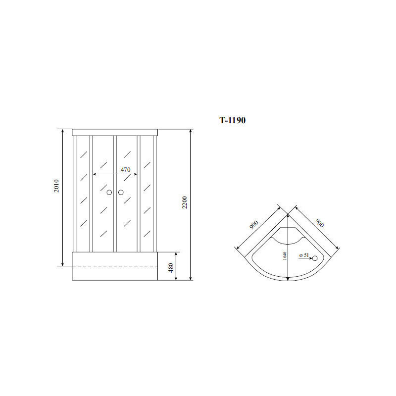 Душевая кабина Timo Standart T-1190. Размер кабины, см: 90x90x220.