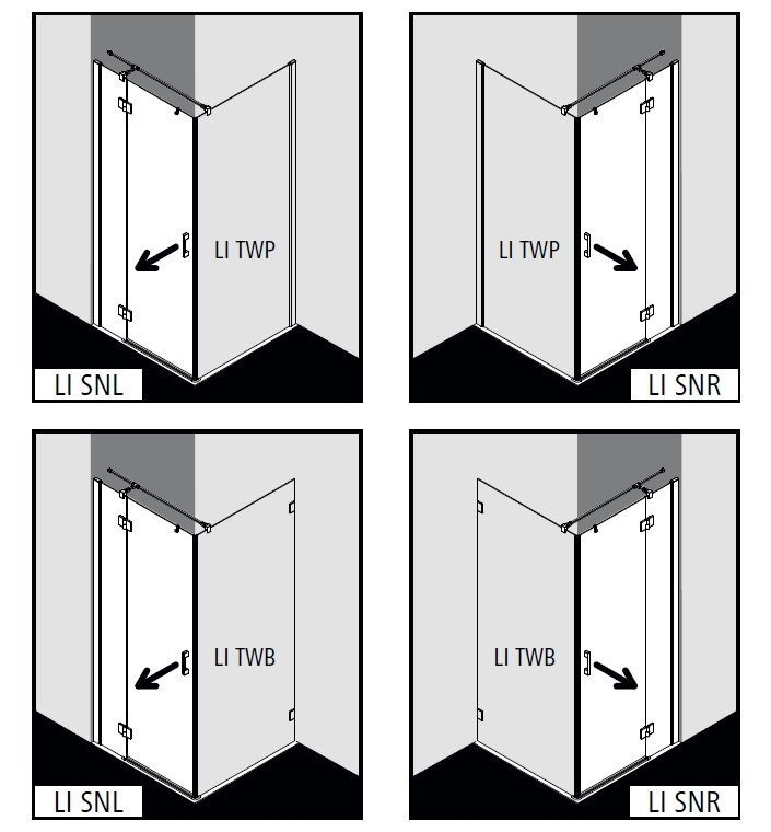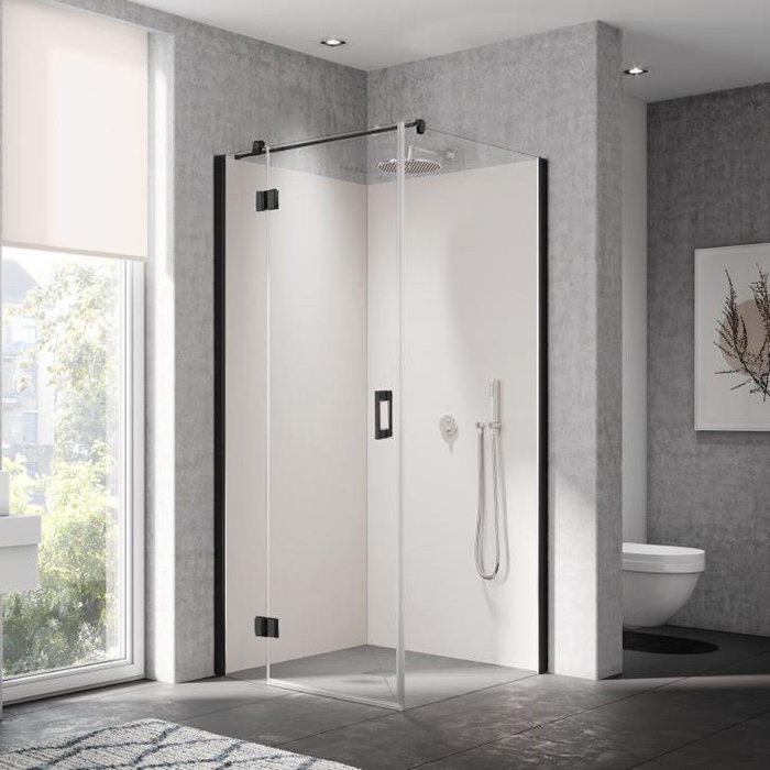 LI SNL 10020 3PK LIGA Распашная дверь с фиксир. панелью H=2000, L=1000, профиль Schwarz Soft +стекло прозрачное ESG с KERMIclean (для комб.со стенкой)