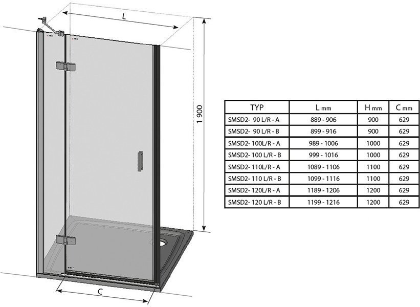 SMSD2-100 А-R хром+транспарент, SmartLine душевая дверь