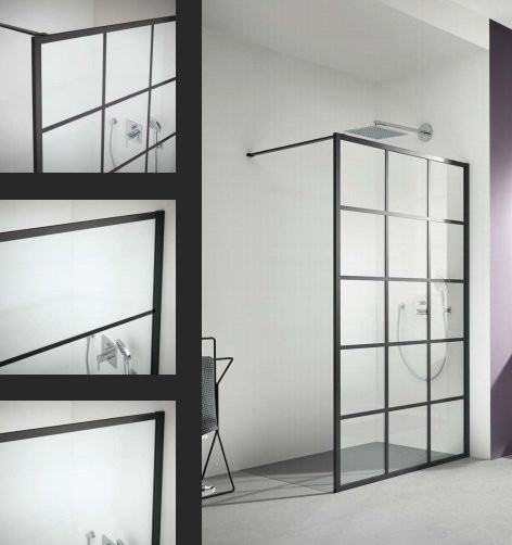 WALK-IN Dark Edition XD WW1 12020 3PK Душ.ограждение H=2000,L=1200, проф.черный Soft+стекло прозр.ESG с покр.KERMIclean(стаб.1200 мм) решетка-рисунок
