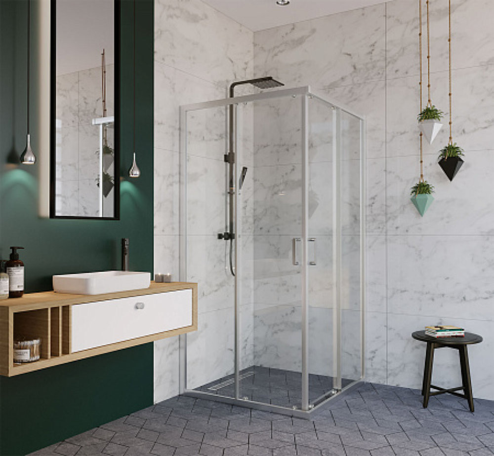 Душевое ограждение (900*900*2000) квадратное, с раздвиж.дверьми, хром.профиль, прозрачное стекло