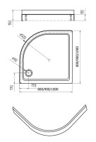 Поддон акриловый, 1/4 круга, с ножками и съемной панелью. БЕЗ СИФОНА. 100*100*15