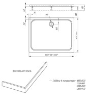 Поддон акриловый, прямоугольный, с ножками и съемной панелью. БЕЗ СИФОНА. 120*80*15