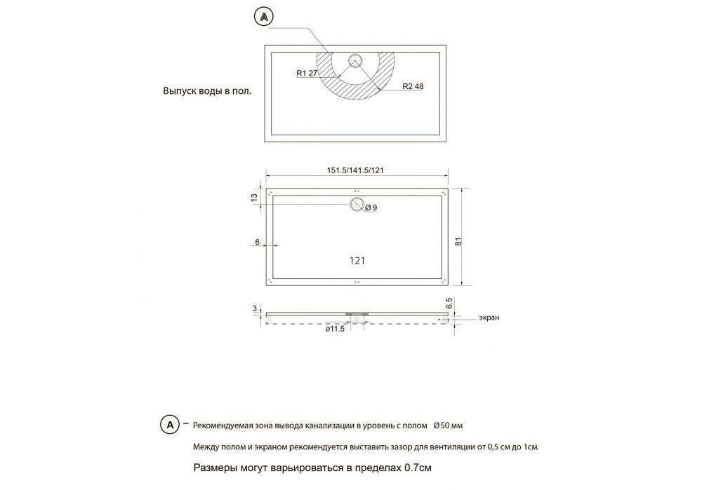 Поддон Альфа прямоугольный 120*80, из литого мрамора с экраном (продаем из наличия)