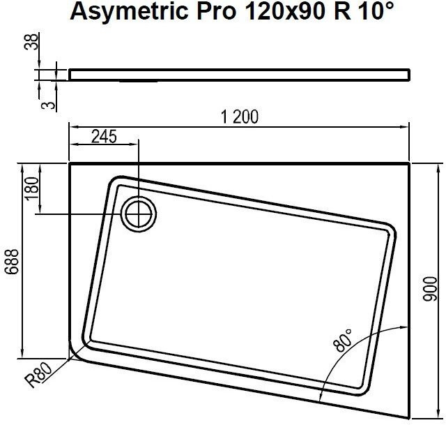 Поддон ASYMETRIC PRO 120x90 R 10° белый (СНИМАЕТСЯ С ПРОИЗВОДСТВА 2023г)