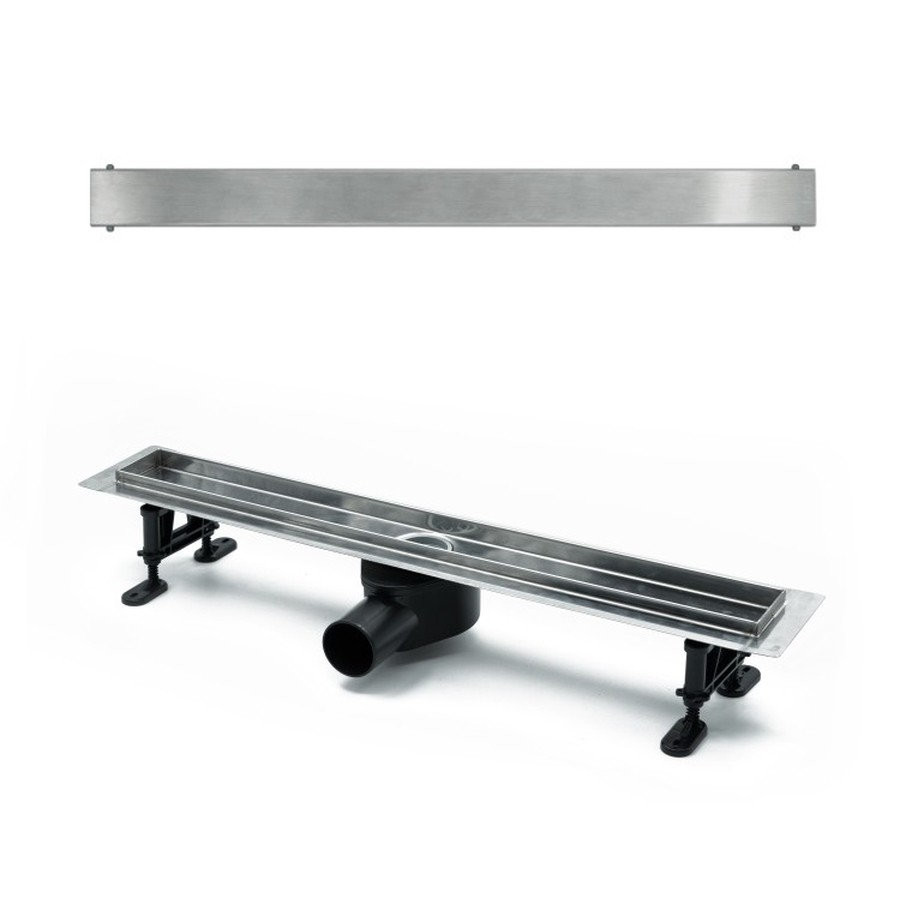 Комплектация: водоотводящий желоб из нержавеющей стали; декоративная панель "lines"; заглушка монтажная; поворотный сифон DN50, выход вбок; комплект регулируемых опор; стакан с мембраной; улавливатель волос и мусора; гидроизоляционная лента; сервисный ключ;