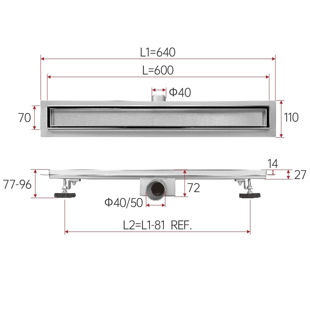 Комплектация: корпус душевого лотка, сифон, регулируемые ножки;