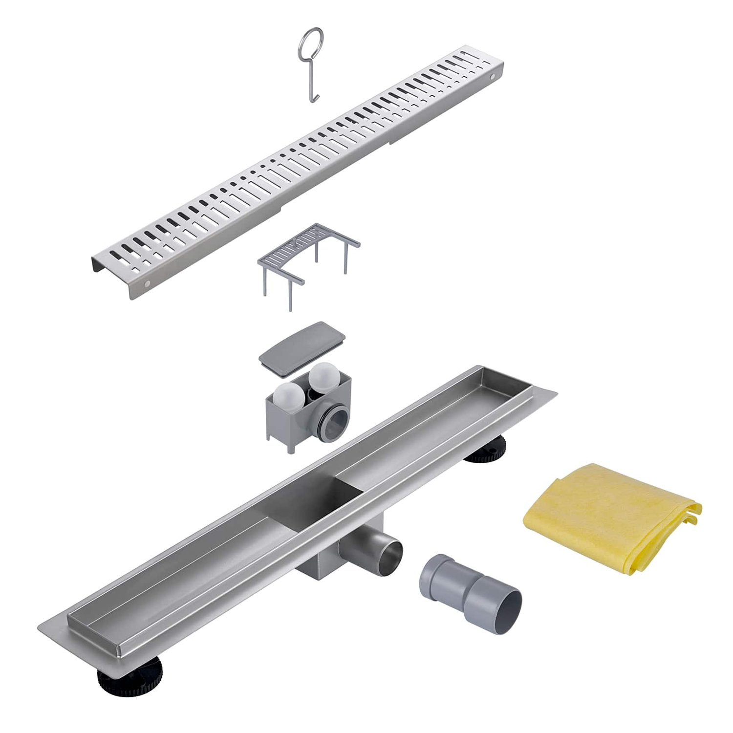 Комплектация: корпус душевого лотка, решетка, сифон, регулируемые ножки;