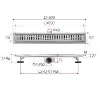 Душевой лоток с решеткой 85 см FASHUN A428503, сатин