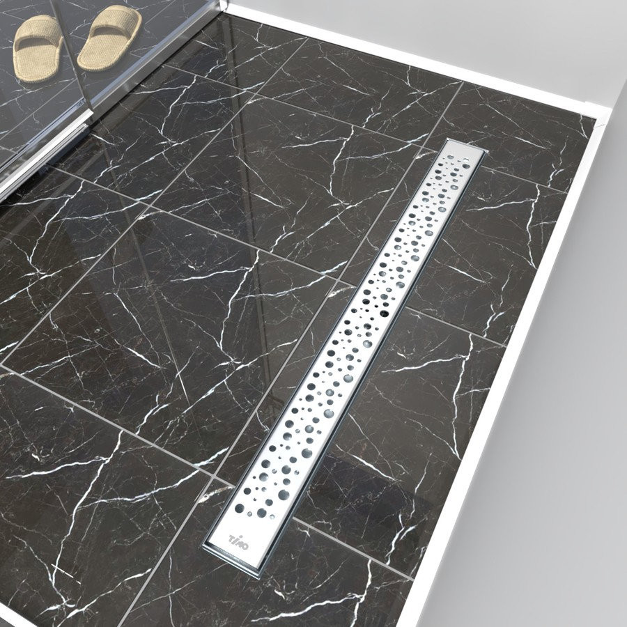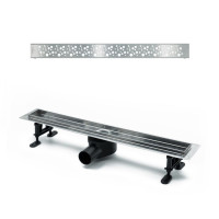Комплектация: водоотводящий желоб из нержавеющей стали; декоративная панель "lines"; заглушка монтажная; поворотный сифон DN50, выход вбок; комплект регулируемых опор; стакан с мембраной; улавливатель волос и мусора; гидроизоляционная лента; сервисный ключ;
