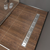 Комплектация: пластиковый водоотводящий желоб с порогами из нержавеющей стали; встроенный сифон DN40, выход вбок 90°; встроенный шариковый сухой затвор; декоративная вставка; комплект регулируемых опор; улавливатель волос и мусора; гидроизоляционная лента; сервисный ключ.;