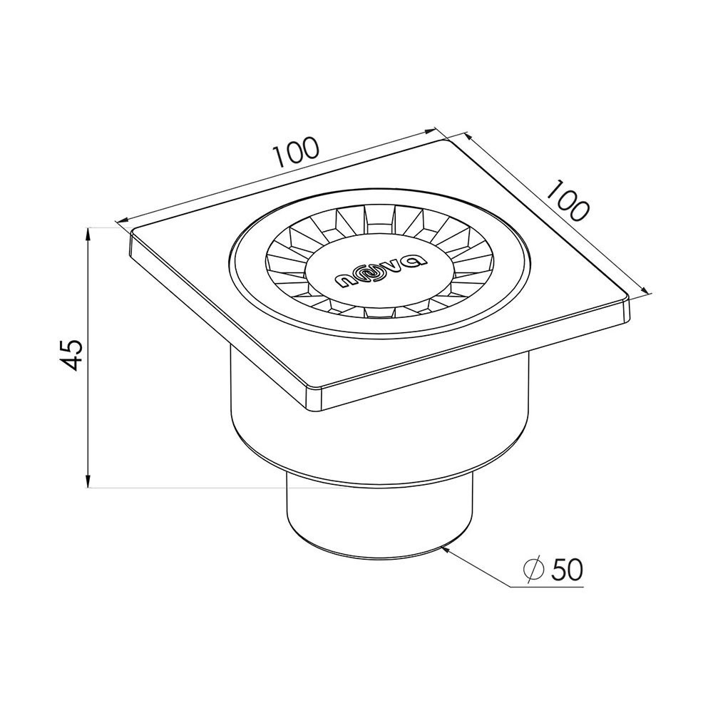 Трап сантехнический пластмассовый 10*10, нижний, Ø50