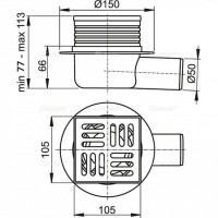 Сливной трап 105 105/50, подводка – боковая, решетка – нерж. сталь, гидрозатвор, арт.APV26