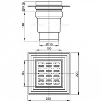 Сливной трап 150 × 150/110, решетка – нержавеющая сталь, воротник – 2-х уровневая, арт.APV13