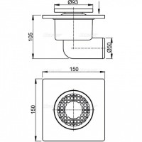 Сливной трап 150 × 150/50, подводка – боковая, решетка – серая, гидрозатвор – мокрый, арт. APV3