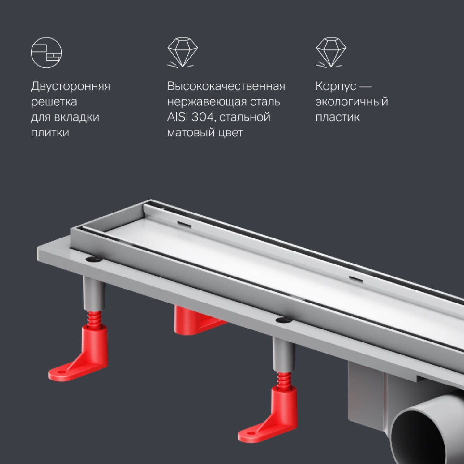 Трап для душа линейный, универсальный затвор Tile, 70 см