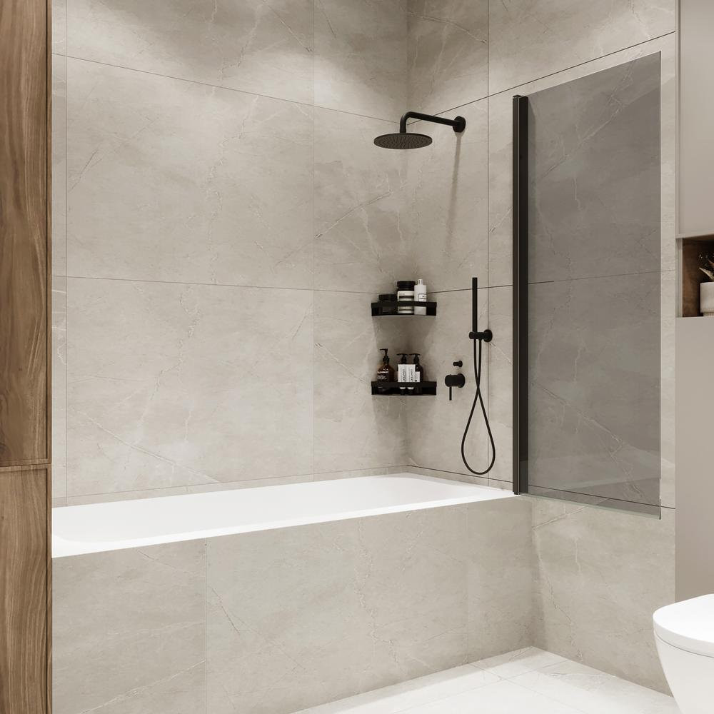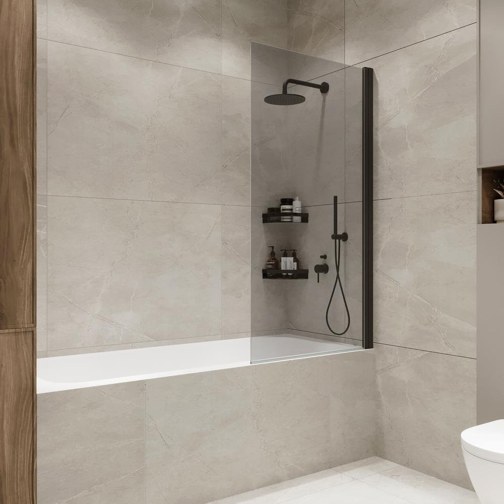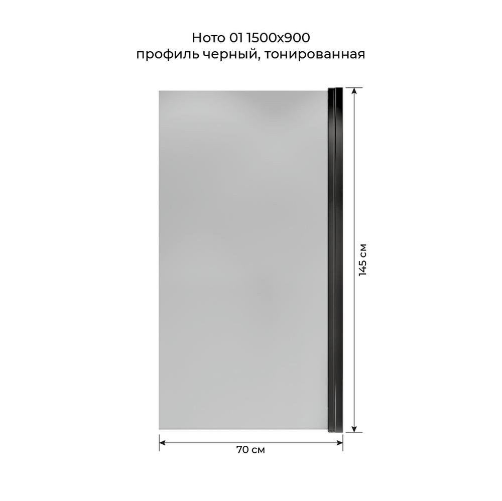 Шторка на ванну распашная Terminus Ното 150х70 тонированная, черный