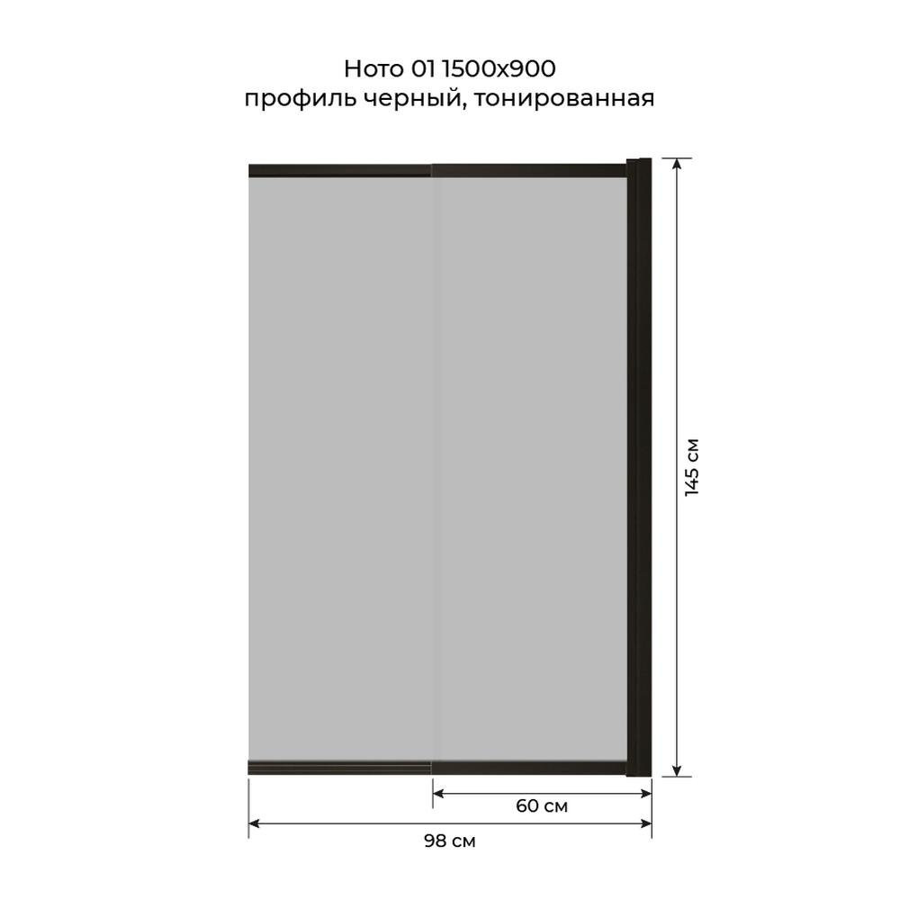Шторка на ванну слайдер Terminus Ното 150х90 тонированная, черный