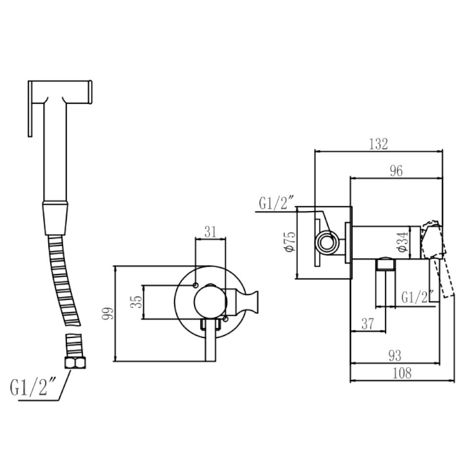 Комплектация: смеситель, шланг, лейка, скрытая монтажная часть;