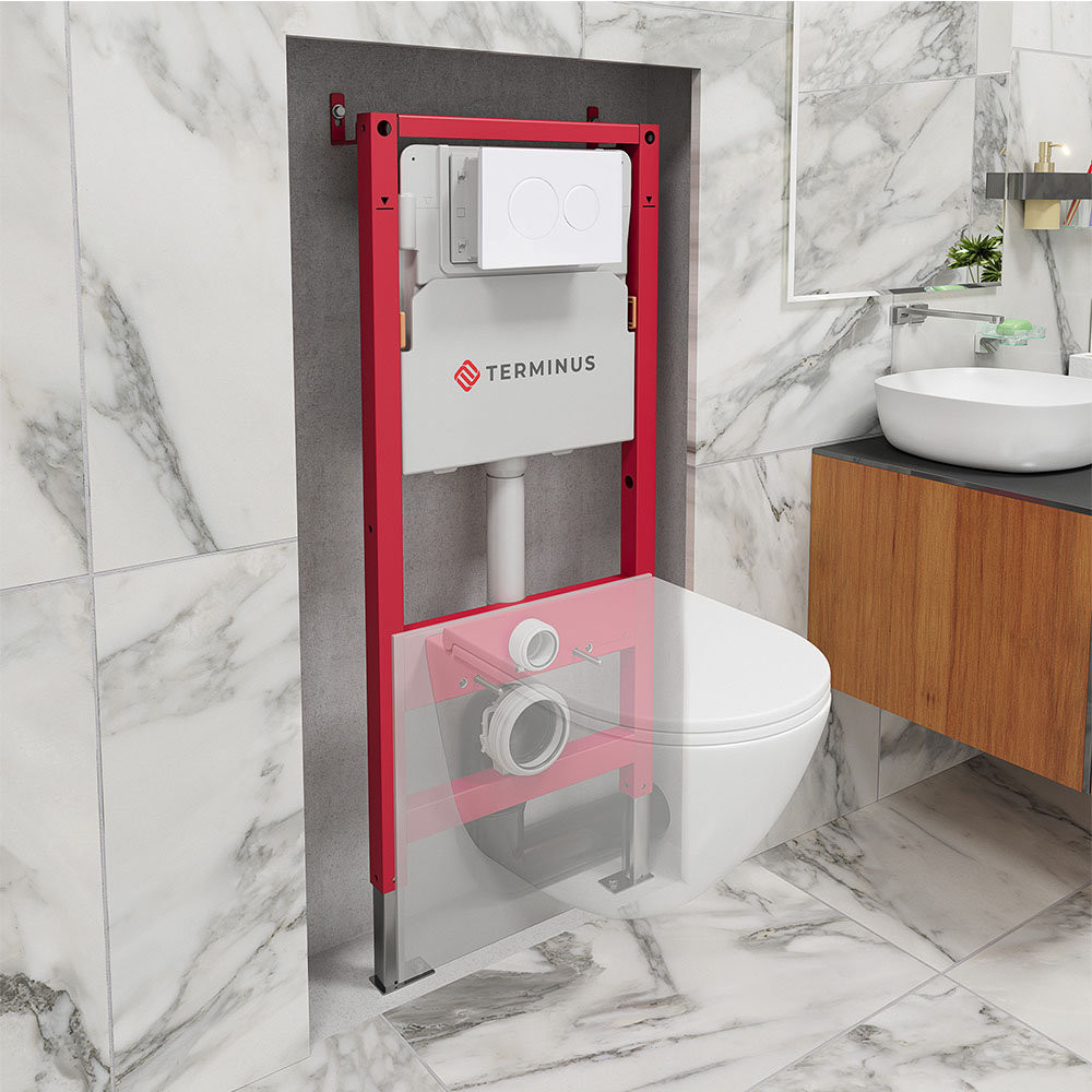 Пневматическая система инсталляции для подвесного унитаза 4 в 1 Terminus, с клавишей