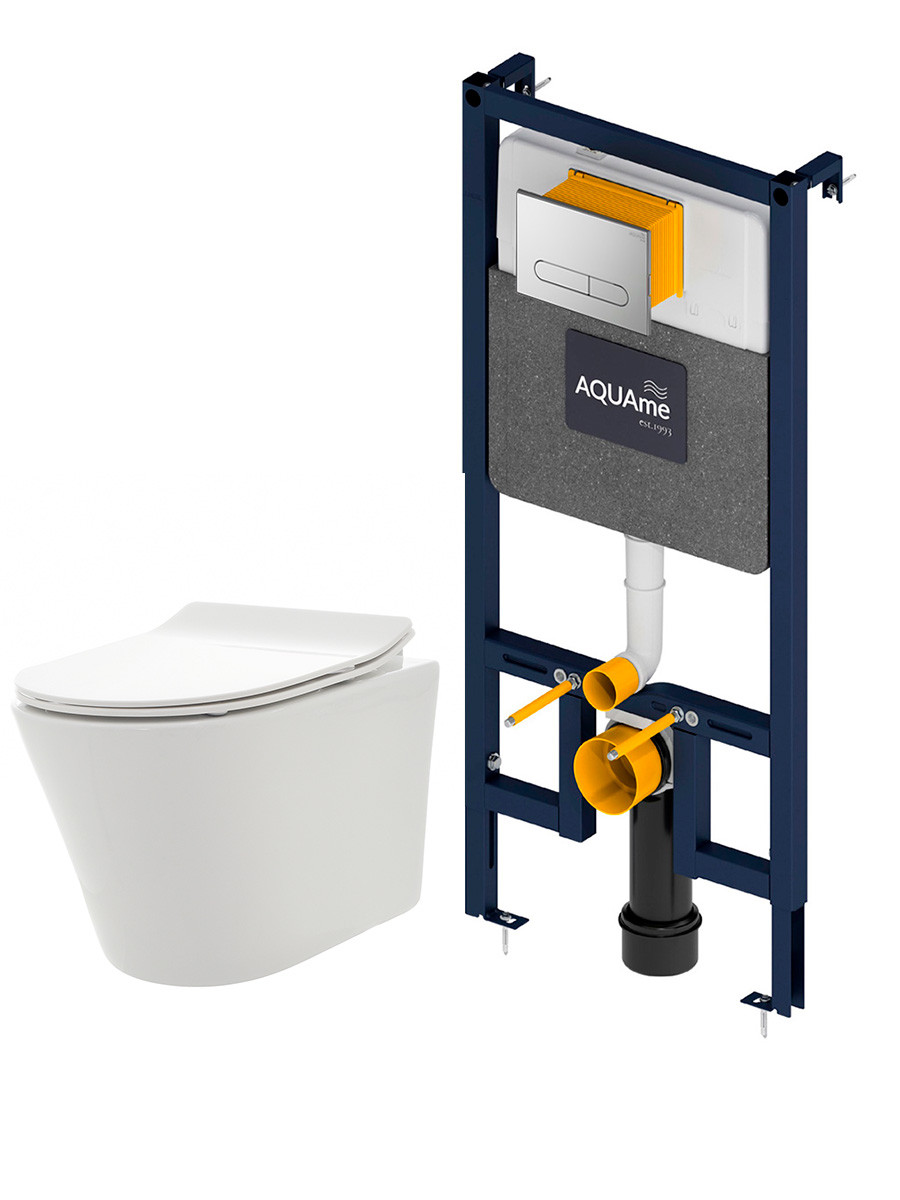 AQM42001CR Инсталляция с хром кнопкой + безободковый унитаз с сиденьем SoftClose (AQM4001CR+AQM2001)