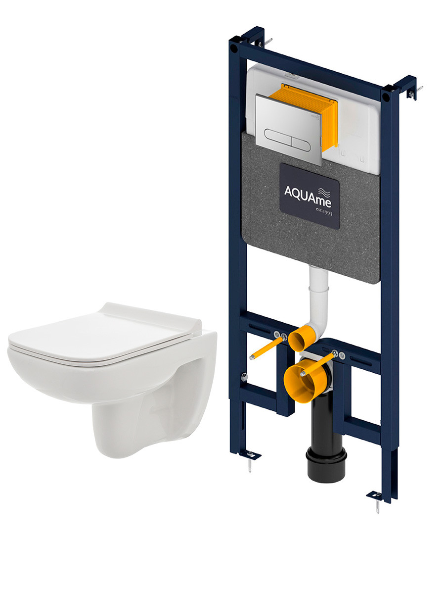 AQM42007CR Инсталляция с хром кнопкой + безободковый унитаз с сиденьем SoftClose (AQM4001CR+AQM2007)