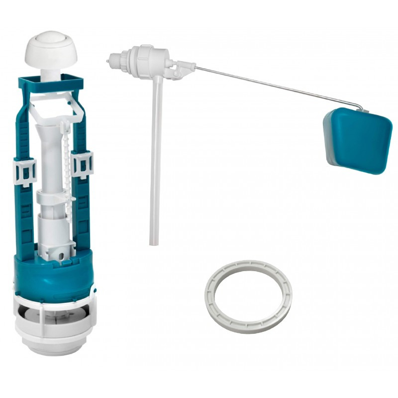 Комплект арматуры для бачка к унитазу. Универсальный сливной клапан СБкпм кнопочный с одним режимом слива (для слива необходимо нажать на кнопку смыва).