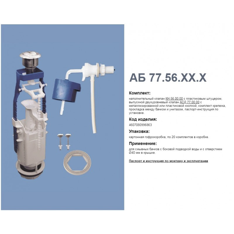Комплект арматуры б/под., кн. хром, 2х реж. А 77.56.14.3 (Уклад)