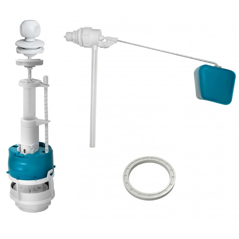 Комплект арматуры для бачка к унитазу. Сливной клапан СБа штоковый (для слива необходимо поднять ручку вверх и отпустить).