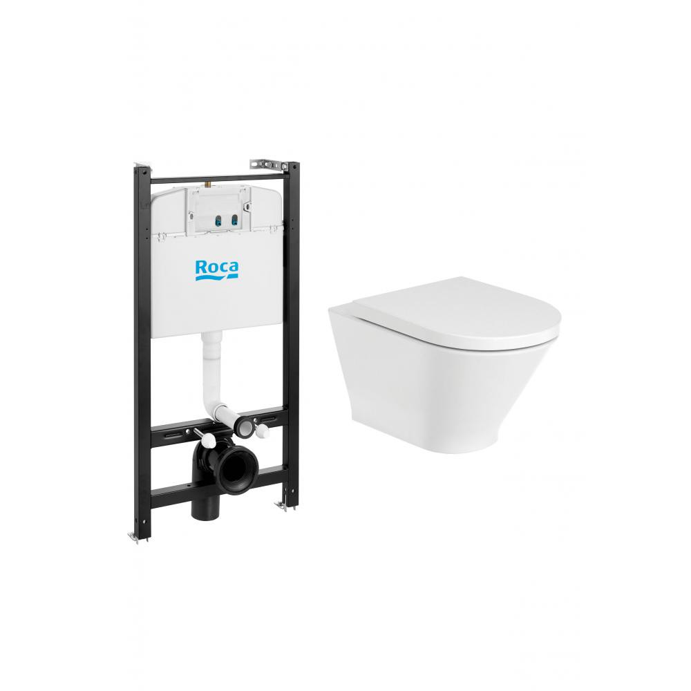 ПЭК Roca The Gap Round Pack подвесной унитаз Rimless + инсталляция + сиденье Supralit (7.8931.0.500.0)
