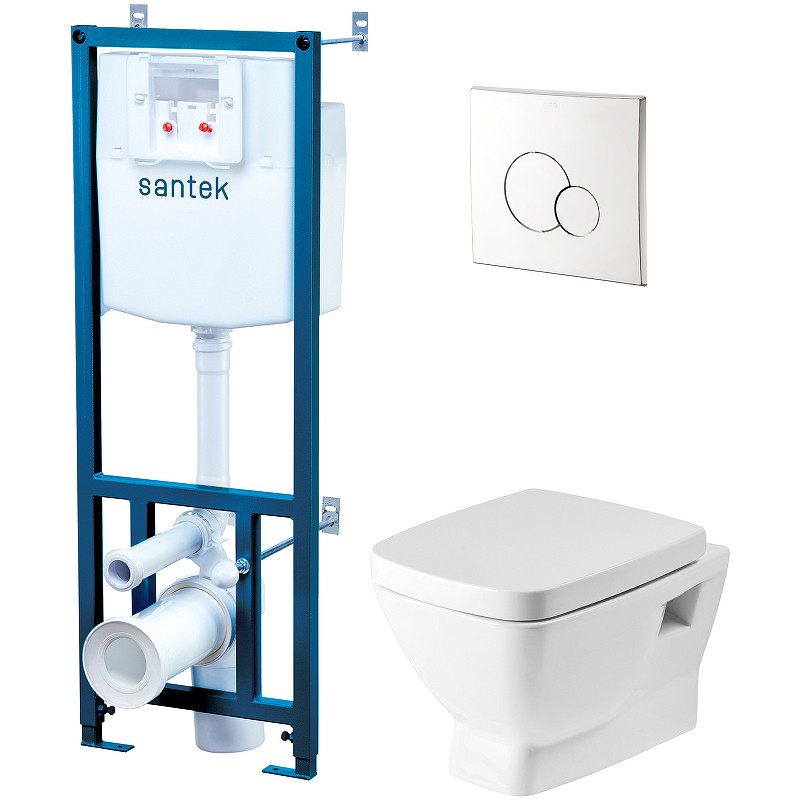 Пэк: Santek Нео подвесной унитаз + сиденье + инсталляция + панель смыва, хром глянец (1.WH50.1.543)