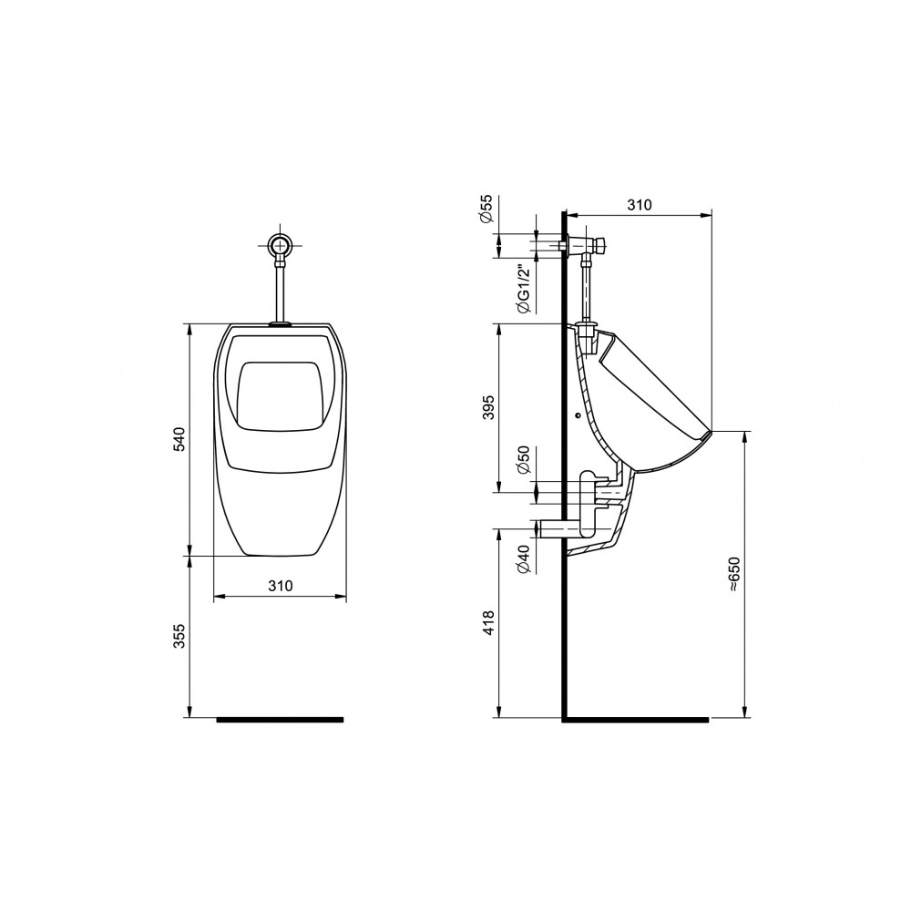1.WH50.1.804 ГАЛА писсуар, в комплекте с краном, креплением и горизонтальным сифоном