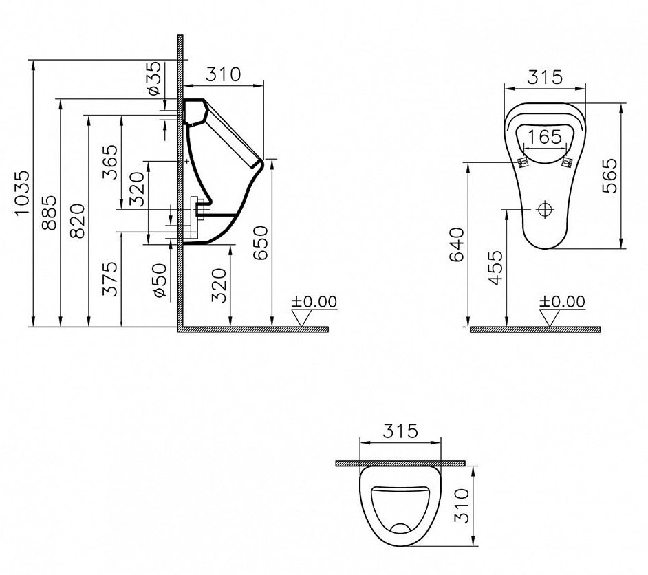 6201B003-0199 Arkitekt писсуар, подвод воды сзади VitrA