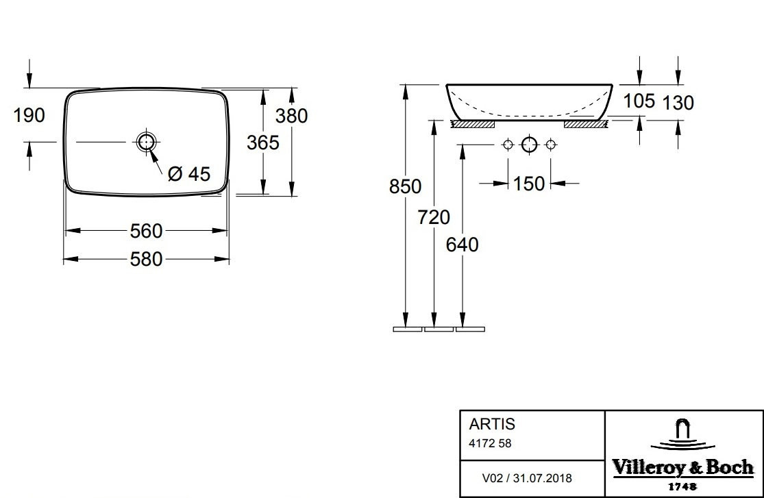 4172 5801 ARTIS Раковина 580x380, накладная, без перелива, не шлиф., Альпийский белый