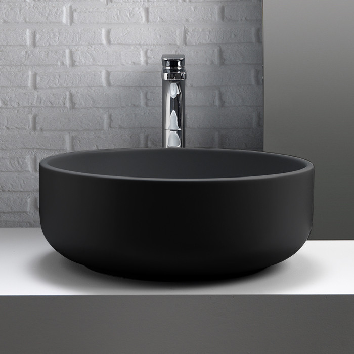 Раковина 46х17 см, без отв., накладная, без перелива, цвет: черный матовый