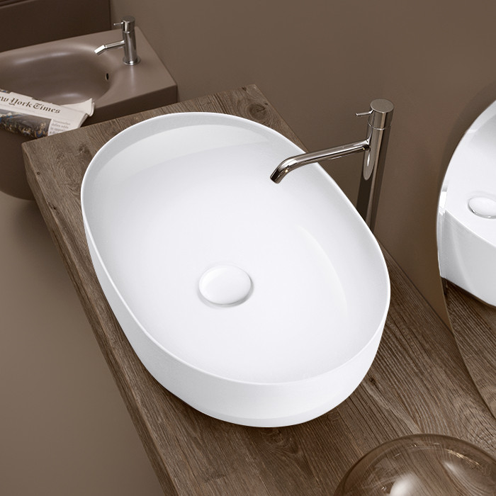 Раковина 60х40 см, без отв., накладная, цвет: белый глянцевый