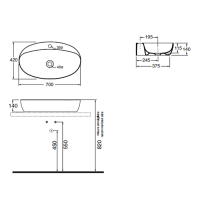 Раковина 70х42 см, 1 отв., накладная, цвет: белый