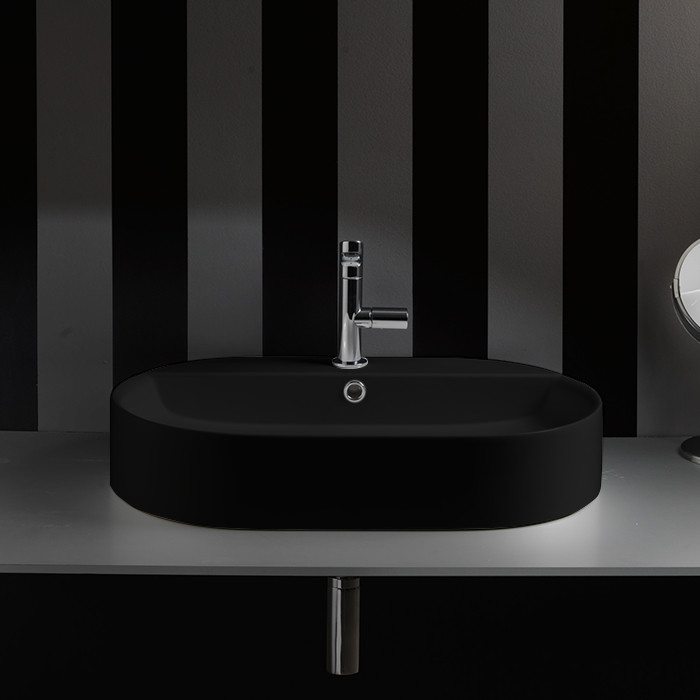 Раковина-чаша 65х40х12 см, 1 отв., с переливом, цвет: черный матовый