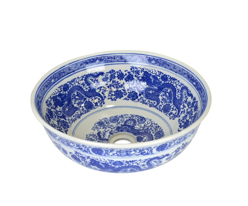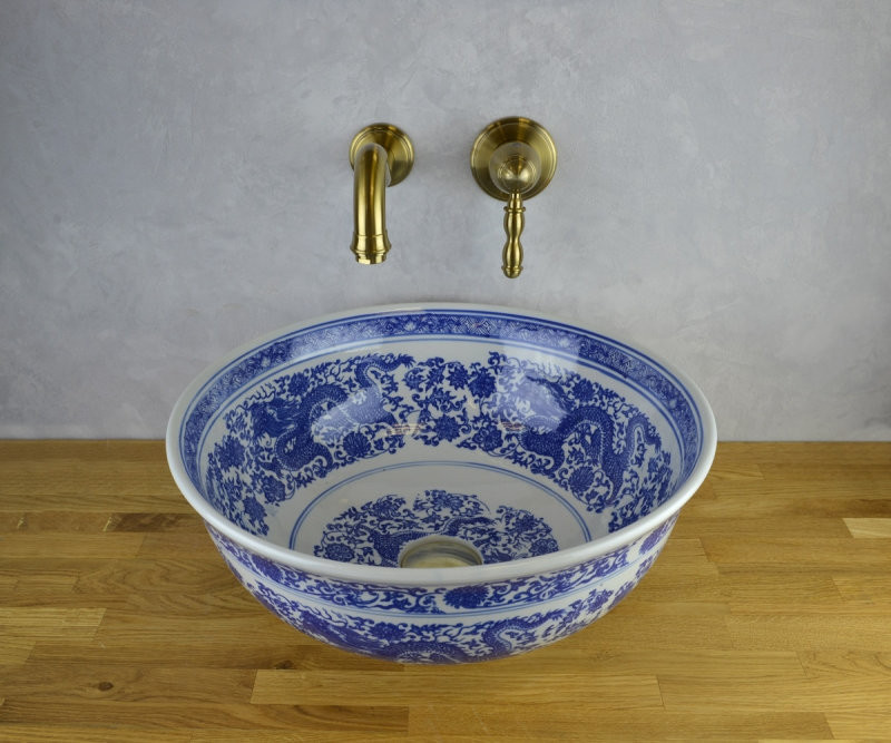Раковина чаша Bronze de Luxe Dragons 6050, белый/синий.