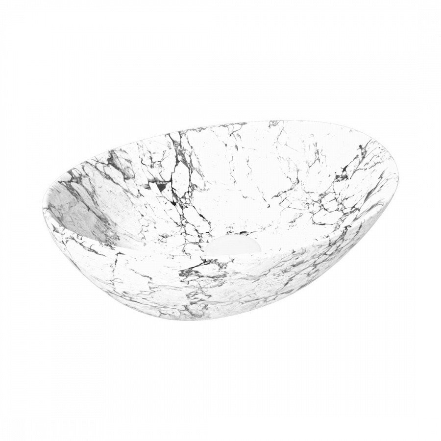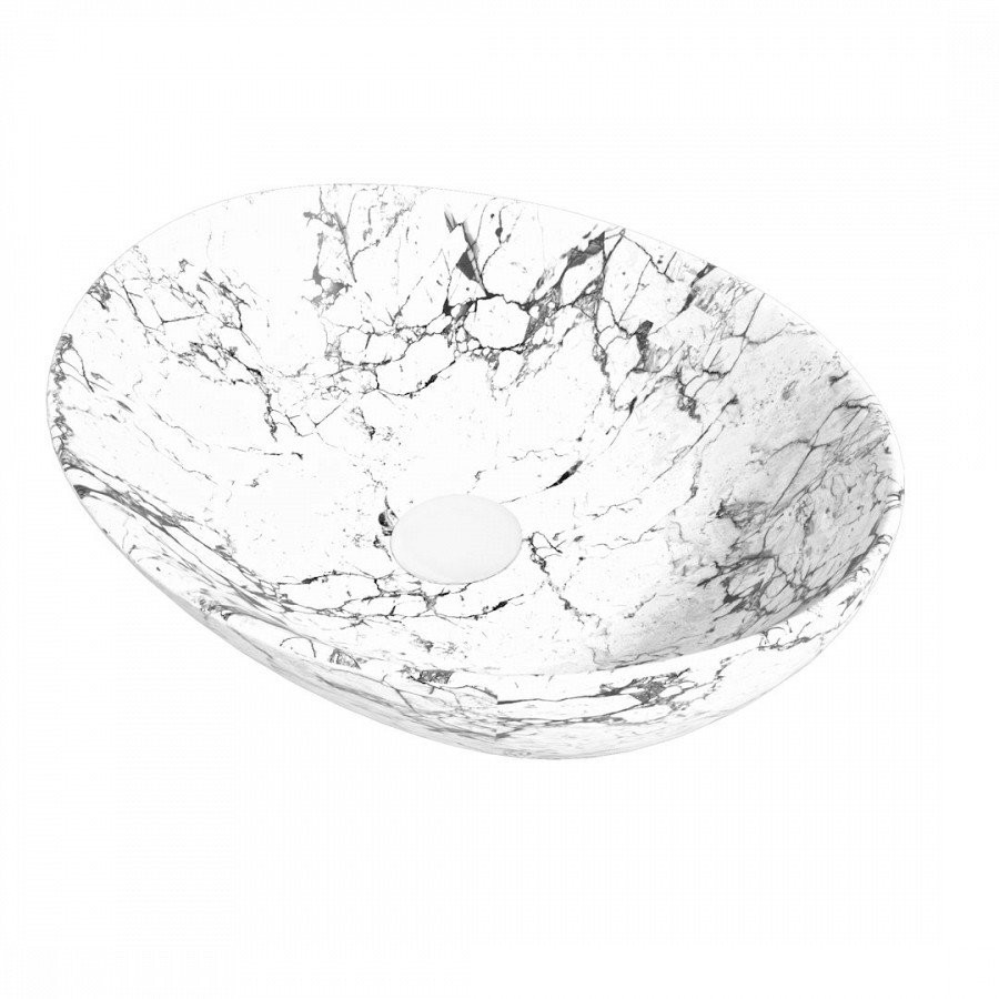 Раковина чаша Maretti EN13NS87-740MR, белый мрамор. Материал: санфарфор. Размер: 41x33,5x14,5. Форма: овальная.