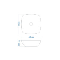 Раковина чаша Maretti KA13NS61-844, белая. Материал: санфарфор. Размер: 43x43x13,5. Форма: квадратная.