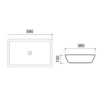 Раковина накладная OCEAN, 4040-OCE12. Размер: 590x365x100 мм. Цвет: белый. Донный клапан в комплект не входит.