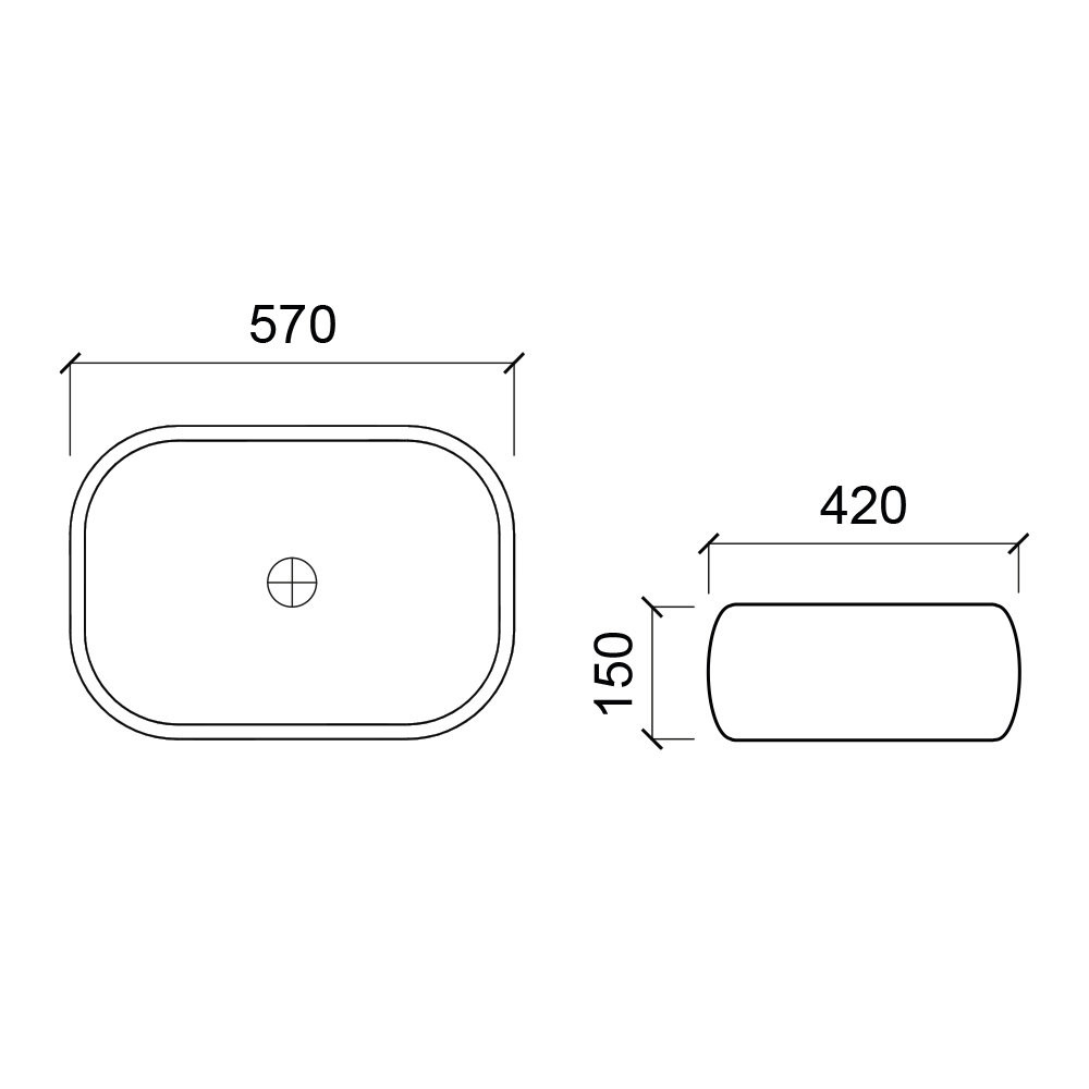 Раковина накладная ROUND, 4050-ROU. Размер: 570x420x150 мм. Цвет: белый. Донный клапан в комплект не входит.