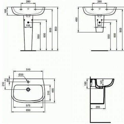 T283901 ESEDRA Колонна для умывальников 50 см, 55 см, 60 см и 65 см