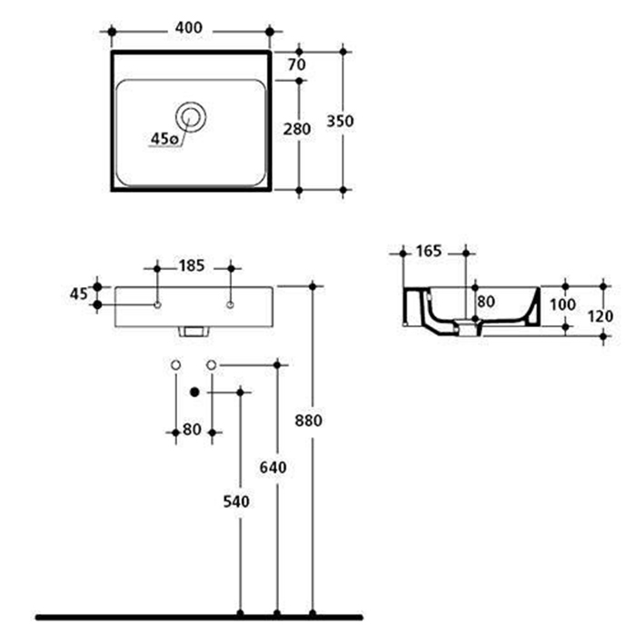 Раковина 40х35см., подвесная, без отв., цвет: белый