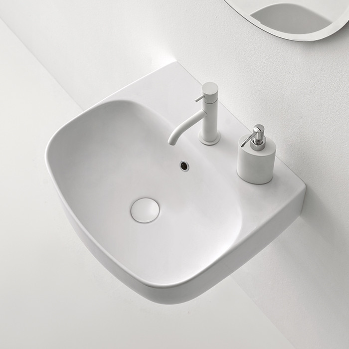 Раковина 50х45 см, 1 отв., подвесная/накладная, цвет: белый матовый