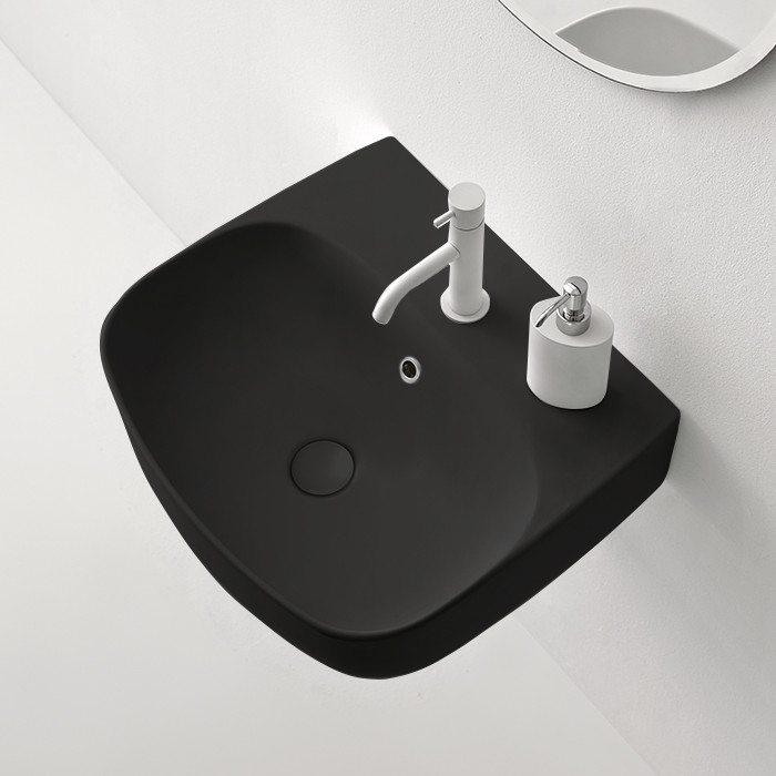 Раковина 50х45 см, 1 отв., подвесная/накладная, цвет: черный матовый