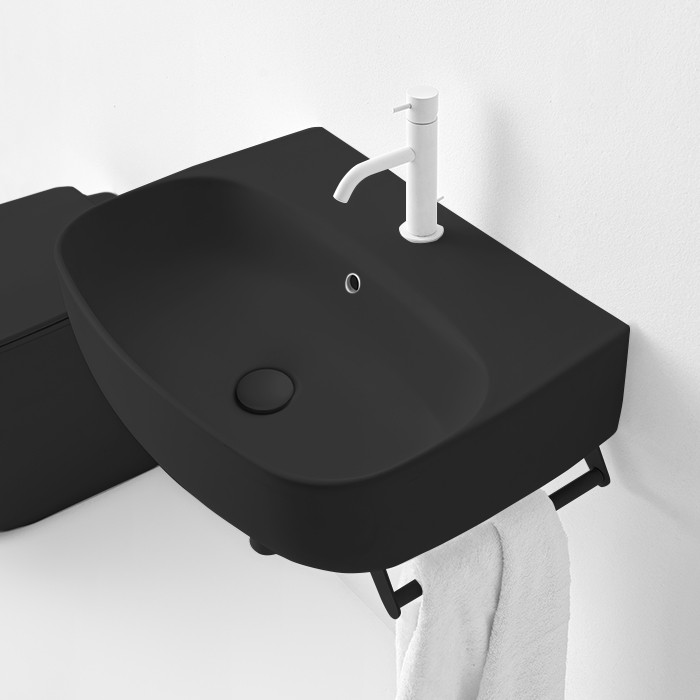 Раковина 60х45 см, 1 отв., подвесная/накладная, цвет: чёрный матовый